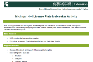 Michigan 4-H License Plate Icebreaker Activity