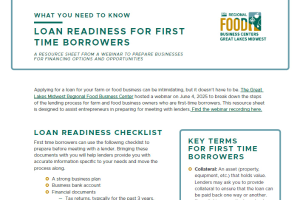 In this resource sheet, you will find a loan readiness checklist, financing options, key terms, and quick tip to help prepare food and farm business entrepreneurs for their first time through the lending process. -