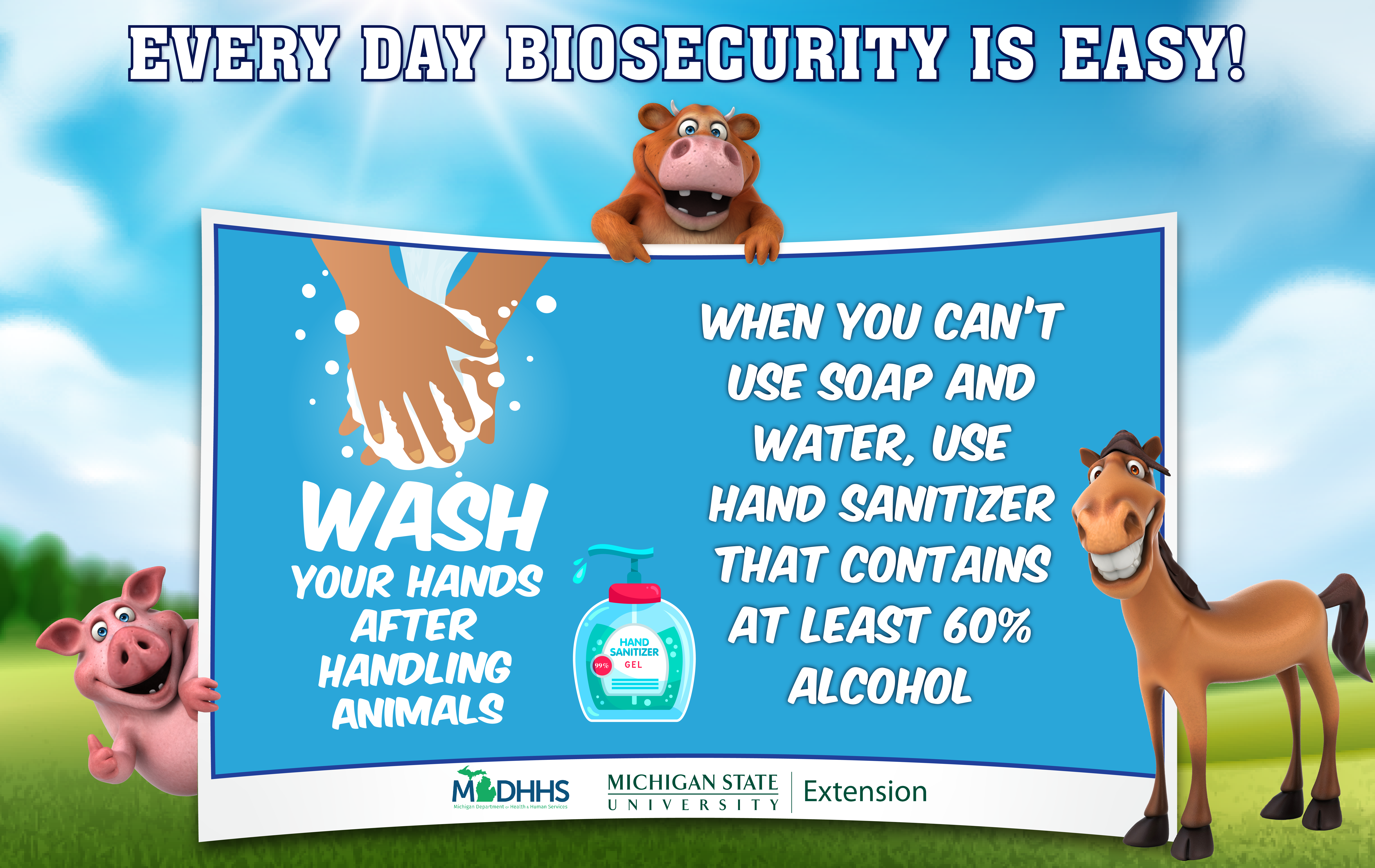 People who raise animals are not the only ones who need to be concerned about diseases that can easily spread between humans and animals. These types of diseases are called zoonotic diseases, and anyone who encounters animals could be at risk. The best way to prevent the spread of zoonotic diseases is by having and using a plan that reduces the risk of disease transmission. This is known as biosecurity and it is an important step to making sure people and animals remain healthy. On this website, you can find resources to create a biosecurity program, and materials for educating youth and adults about zoonotic diseases.