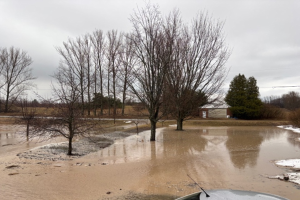 Many orchards across northwest Michigan are impassable due to standing water in orchards. Growers are concerned about covering for early disease control with the excess water in the orchard. -