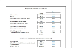 The Margin Goal Worksheet for Grain Marketing helps to identify a crop’s profit margins and marketing price targets. -