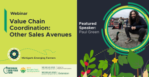 Paul Green, of Marrow Detroit Provision, presented on three sectors of the value chain, discussed Michigan’s local food value chain coordinators, and outlined alternative models. This is the second webinar as part of the Emerging Farmer Learning Series. -
