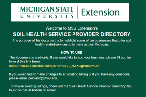 The purpose of this document is to highlight some of the businesses that offer cover crop related services to farmers across Michigan. -