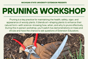 Pruning is an important cultural practice used to maintain the health, safety, vigor, and appearance, of woody plants. It involves both art and science: art, in shaping plants in harmony with their growth habit to enhance their appearance, and science, in knowing how, when, where, and why, to prune for maximum benefit. During this in-person workshop, you will learn key terms and techniques to successfully prune small trees and shrubs in the home garden, you will be able to watch demonstrations of pruning techniques on trees and shrubs, and ask questions of Extension Educators.