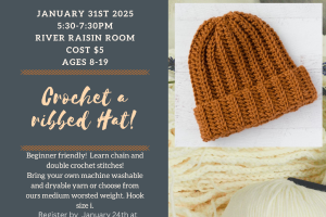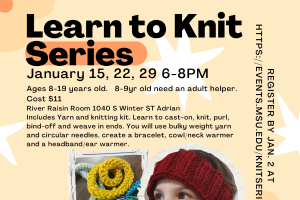 Youth ages 8-12 years will learn how to finger knit by making a scarf.