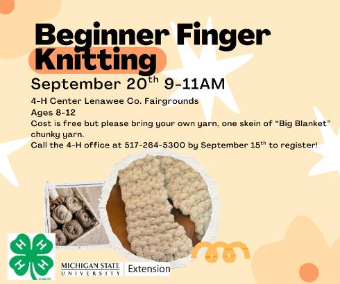 Call the 4-H office at 517-264-5300 by September 15th to register!