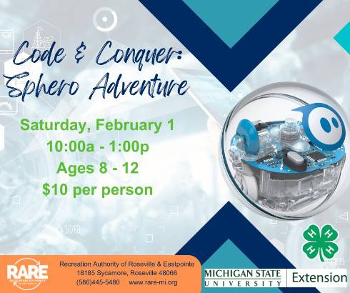 Macomb County 4-H is excited to partner with the Recreational Authority of Roseville Eastpointe. Discover the world of coding using Swift Playgrounds, an interactive platform that makes learning to code a breeze for beginners. Interact with Sphero robots, the coolest way to learn robotics and programming. From coding challenges to navigating obstacle courses, get ready for a series of fun and educational activities that will unleash your creativity and problem-solving skills.