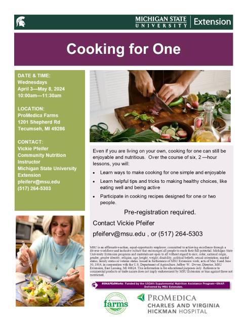 Cooking for One Promedica Farms April 2024