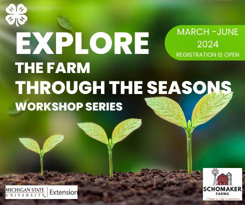 Schomaker Farms and Saginaw 4-H Michigan State University are teaming up to offer a 12-month farm education learning series in 2024. Each month will offer a different learning topic and hands-on activity. Youth will be fully immersed in the farming experience!