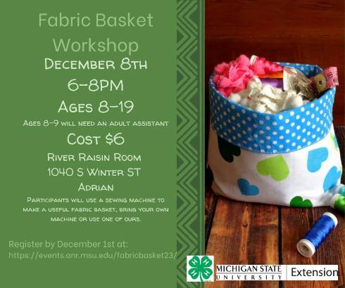 Contact: MSU Extension Lenawee County office at 517-264-5300.