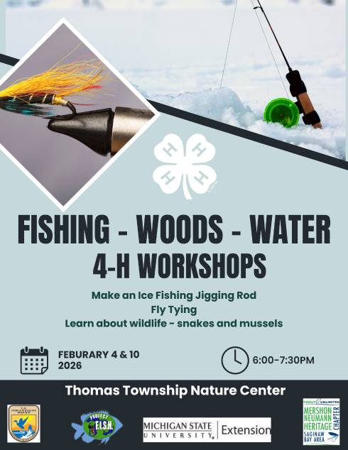 Join us for the 4-H Fishing, Woods & Water Workshop Series at the Thomas Township Nature Center!