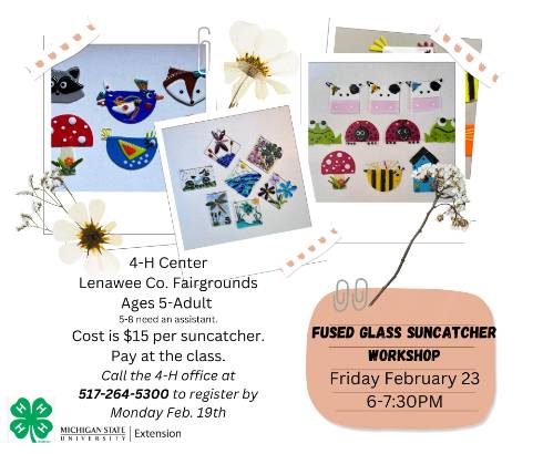 Call the 4-H office at 517-264-5300 to register by Monday, Feb. 19th.