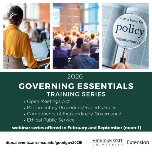Governing Essentials is a program of the MSU Extension Government & Community Vitality Team, helping individuals and local and tribal governments build capacity to support thriving communities by: