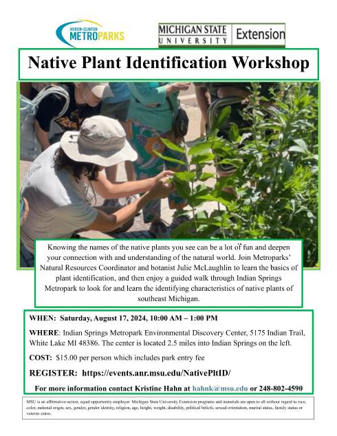 For more information contact Kristine Hahn at hahnk@msu.edu or 248-802-4590