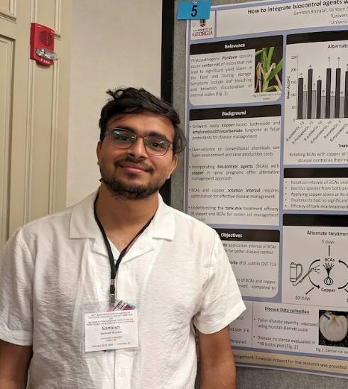 Georgia is the top producer of spring-grown onions in the US. Vidalia onion is the state vegetable of GA produced in only 20 legally specified counties. They are yellow Granex-type onions preferred for their low-pungency and sweet flavor. Diverse plant-pathogenic Pantoea species can cause center rot of onion that leads to substantial losses in the field and during storage. Pantoea stewartii subspecies indologenes (Psi), known to cause disease in millets, was recently identified to cause center rot. Psi has not been well-characterized in this novel pathosystem and its transmission risk to onions in cropping systems where millets precede onion-planting is less understood. My Ph.D. research focused on characterizing Psi strains and assessing its transmission risk from crop residue to onions. Additionally, we explored strategies to incorporate biocontrol agents (BCAs) into spray programs for center rot management. We proposed two distinct pathovars within Psi based on their pathogenicity profiles. Despite planting onion seedlings in Psi-infested soil, no bacterial colonization was observed in onion rhizosphere and leaves. Findings from our study to integrate BCAs with copper indicated that, under low disease pressure, rotation interval between BCAs and copper could be extended to 10-14 days without compromising disease control. However, tank-mix application of BCAs with copper offered no additional disease suppression. Overall, onion growers could reduce Psi transmission risk by facilitating crop residue breakdown before onion transplanting and under low disease pressure, copper can be rotated with BCAs in a spray program.