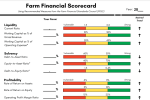 The Farm Finance Scorecard gives the definition of the Farm Financial Standards Council ratios as well as how to calculate each ratio. -