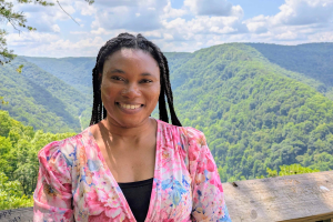 Master’s student, Esther Tonade, studies Urban and Community Forestry, using research, data analysis, and community partnerships to help build greener, fairer cities for everyone. -