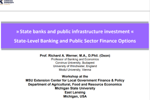 As part of the More Resilient Michigan event hosted by the MSU Extension Center for Local Government Finance and Policy, this presentation shares insight on state-level banking and public sector finance options.