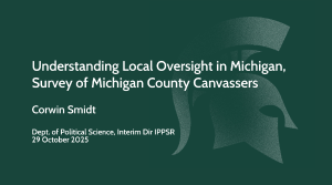 As part of the More Resilient Michigan event hosted by the MSU Extension Center for Local Government Finance and Policy, this presentation shares insight from a survey of Michigan county canvassers to better understand local oversight. -