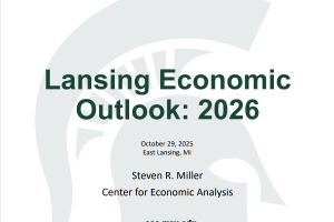 As part of the More Resilient Michigan event hosted by the MSU Extension Center for Local Government Finance and Policy, this presentation shares a statewide and Lansing-area economic forecast for 2026. -