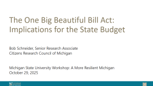 As part of the More Resilient Michigan event hosted by the MSU Extension Center for Local Government Finance and Policy, this presentation shares information on the federal reconciliation process for the 2026 budget and the state of Michigan. -