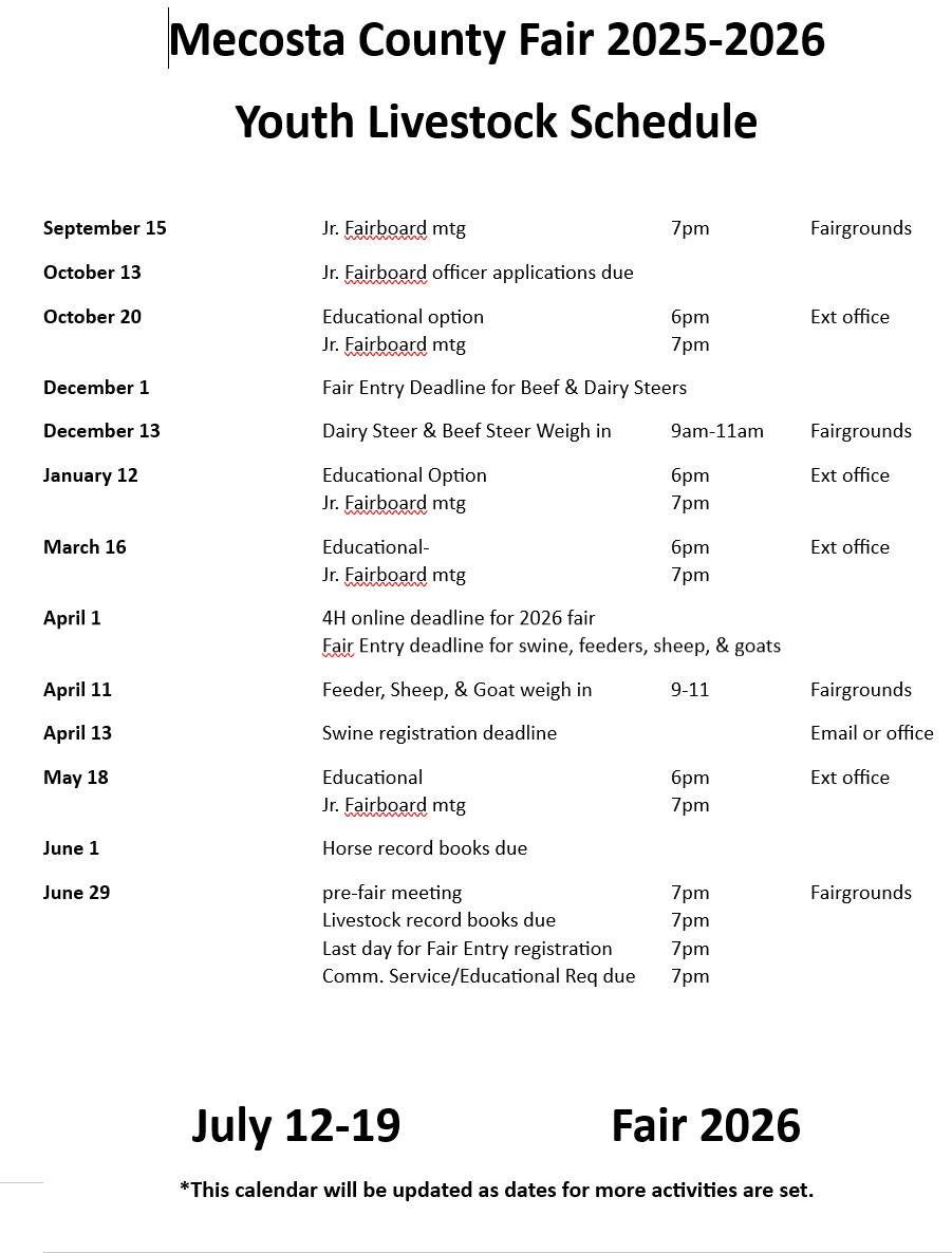 Youth Livestock Schedule
