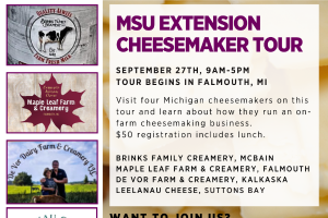 Love the squeak from biting into a fresh cheese curd? Delight in the sharpness of an aged cheddar? Savor spreading soft cheese on a toasted bagel? Dream of making cheese as a business? Then you may be interested in participating in the Michigan State University Extension Artisan Cheese Workshop.