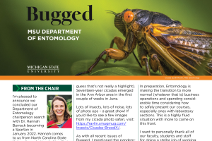 Thank you to the alumni who have shared their news with us. Learn about their new books, promotions and the national expansion of a sustainable agriculture/pollinator program for veterans. It’s all here to share with you in the Winter/Fall 2020 issue of Bugged.