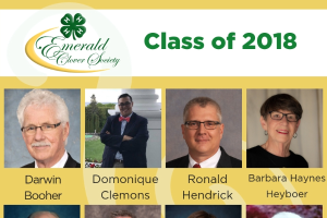 The 4-H Emerald Awards Ceremony was hosted and emceed by State Sen. Judy Emmons, a Montcalm County 4-H alumna and 2014 4-H Emerald Clover Society inductee. Also inducted into the 4-H Emerald Clover Society Class of 2018 were: Darwin Booher, Evart; Ronald Hendrick, East Lansing; Barbara Haynes Heyboer, Hudsonville; W. G. (Mac) McPherson, Lowell; Thomas Nugent, Clarksville; Maggie Sans, Clarkston; and Gretna Van Fleet, Frankenmuth.