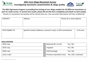 Submit samples of corn silage for a free mycotoxin analysis as part of MSU research survey.
