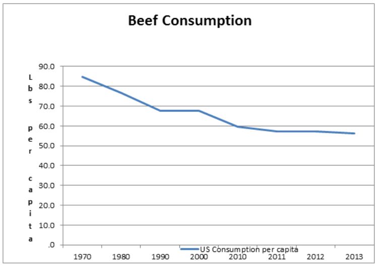 Domestic consumers seem to be reacting to higher prices and to concerns about the health impacts of beef consumption; resulting in more consumption of plant-based products and other meats.