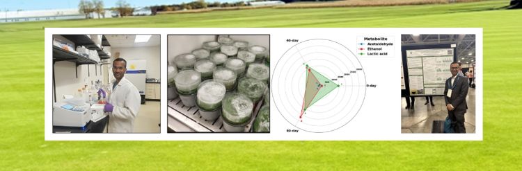 Chalise’s current project centers on how cool-season turfgrasses survive winter stresses, especially ice encasement—one of the biggest causes of winterkill in northern climates. He investigates stress pathways such as anaerobic metabolism, antioxidant activity, reactive oxygen species dynamics, and cuticular wax changes in species like perennial ryegrass, annual bluegrass, and creeping bentgrass. Alongside this physiological work, he is developing rapid viability assessment tools using dye-based assays, laser scanning confocal microscopy, and spectrophotometry to help turf managers determine survival quickly after ice melt.