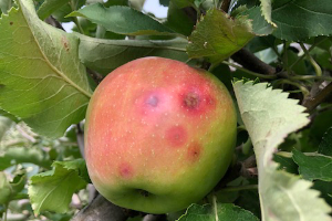 Sooty blotch and fly speck symptoms were first reported last week, and more growers are finding light symptoms this week. Black rot fruit infections are more common this week. Limb collapse, wilting and browning from black rot infections in the wood tissue have been seen over the last month. Three weeks ago, the first black rot leaf infections started to be seen, and two weeks ago I started to see fruit infections.