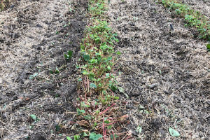 Strawberry regrowth has continued to rebound in renovated fields. Most fields have filled the rows well with good, healthy crowns developing for next season. Newly planted strawberry rows have also filled in well, especially after recent rains.