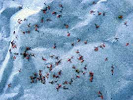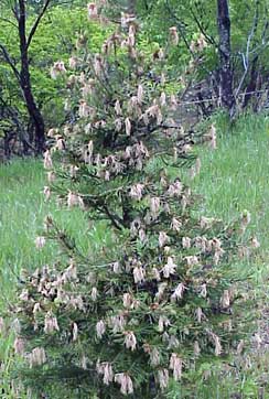 Douglas-fir needle midge is a relatively new pest to Michigan. To date, the only Douglas-fir needle midge we have found are around the Cadillac area. Needle midge adults are emerging now and live only a couple of days, just long enough to mate and lay eggs. The eggs are deposited in groups on newly expanding buds. Midge eggs hatch in a couple of days, and the larvae immediately bore into young needles. Larvae feed in the needles throughout the summer. When they are full grown in the fall, the larvae drop from the needles and spend the winter in the soil beneath infested trees. Apply a registered insecticide within a week after first adults are detected.
