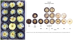 - Starch: 1 = all starch, 8 = No starch; range is of all fruits tested. Using Cornell Starch Iodine Index Chart.