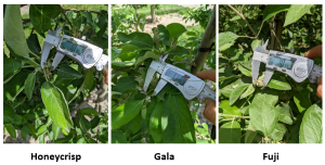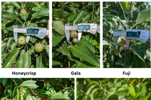 As a result, phenological development has been rapid. Most varieties of apples moved into king bloom by Thursday to Friday and full bloom over the weekend. Gala, fuji, and Honeycrisp are currently in late bloom to petal fall and are expected to remain so for the rest of the week. Early varieties such as Ginger Gold and Zestar are at petal fall and fruit size is near 6 mm. Peaches are past bloom, with fruitlets developing and still in the shuck. Tart and sweet cherries are also past bloom, and still in shuck stage.
