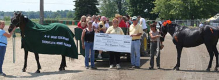 The Livingston County 4-H Grand Equestrian Program, a therapeutic horseback riding program for children with physical and mental disabilities, honored two Standardbred horses this year for their devoted years of hard work. A parade was held on July 21, 2009, in front of the grandstands during the harness races at the Fowlerville Fair.