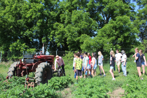 A highlight of the day was a haltered goat walk. Goat walk? Yep you heard right! Each camper group was able to take Aster the yearling goat for a walk around the farm. The campers were excited to take turns holding the hardness and wandering around the farm. We would like to say we were walking the goat, however, from the looks of it.. it looked like Aster was walking the campers with her determination to walk to all the delicious yellow flowers. haha.