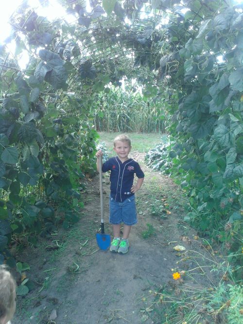 • Once the arch is in place plant a row of beans on the inside or the outside of the panels.