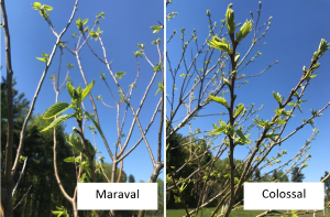 Observed cultivars have really progressed over the past with the first leaves fully expanded at this time and catkin initials present.