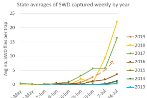 Growers can determine how well their program is working by sampling fruit using the salt or sugar test to look for larvae in fruit in the days prior to harvest. Please note that this will be the final SWD update for the 2019 season.