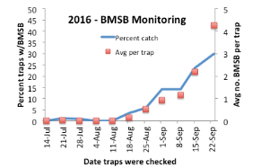 One adult brown marmorated stink bug has been captured in a trap next to a peach orchard near Niles, Michigan in Berrien County, but no other detections have been reported.