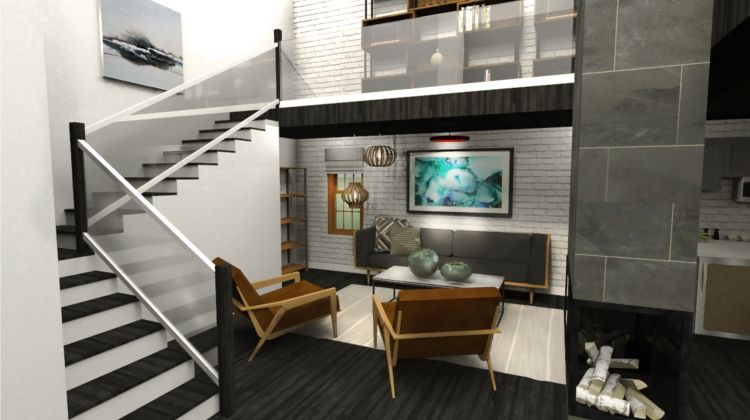 Create a space to function as a vacation rental unit for up to two guests. This structure will depict modern interior and exterior styles and include high-end finish materials and amenities. The interior will feature an open concept plan and include an open loft.