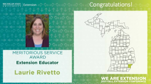 Karly Creguer, MSU Extension district 9 director, nominated the council for establishing a food hub and distribution system that provides nutritious food to seniors and family with children. An average of 1,500 bags of food are delivered to low-income residents of St. Clair, Tuscola, Huron, Sanilac and Lapeer counties each week.