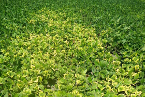 Soybeans are highly responsive to iron, but visual deficiency symptoms are rarely seen in Michigan. Iron deficiency chlorosis is most likely to occur on calcareous lake bed soils having soil pH levels greater than 7.4. Consider selecting varieties that are tolerant of iron deficiency when growing soybeans on these soils. Additional research is required to determine if iron fertilizer applications or the use of iron deficiency chlorosis-tolerant varieties is beneficial in the absence of visual deficiency symptoms when soybeans are grown on calcareous lakebed soils.