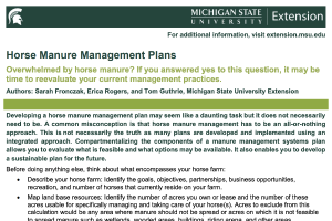 Michigan State University Extension has developed a resource a document to help equine owners feel more confident in managing horse manure.