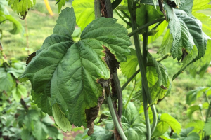 Rose chafers are considered a generalist pest and affect many crops, particularly those found on or near sandy soils or grassy areas conducive to grub development. The adult beetles feed heavily on foliage and blossom parts of numerous horticultural crops in Michigan and can cause significant damage to chestnut orchards. Rose chafers can be particularly damaging on young trees with limited leaf area. Like Japanese beetles, rose chafers skeletonize the chestnut giving them a fine, lace-like appearance. Unlike potato leafhopper, that cause a phytotoxic affect due to feeding, rose chafers cause simple mechanical damage. Growers should consider that chestnut trees can sustain a significant amount leaf feeding from rose chafers with no negative implications to the tree or crop; this is particularly true for larger established trees. However, growers should be aware of potential flower damage as that could have potentially substantial implications on yield.