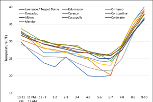 In addition, the strong push of warm air from the south has brought an influx of armyworm and black cutworm moths into the upper Midwest. Purdue University has reported high numbers of moths caught, and MSU Extension educator Paul Gross caught over 1,000 moths this week with a Hartstack pheromone trap located near Mount Pleasant, Michigan. While these types of traps are very efficient at catching moths compared to the standard bucket trap, it is clear that there are likely to be hotspots for both black cutworms and armyworms across southern Michigan.