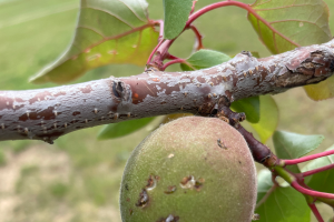 Peach and nectarine fruit are 40-plus millimeter (mm) in diameter, with pits still soft. Protection against plum curculio and tarnished plant bug is still needed if there is a crop. Flagging of branch tips by oriental fruit moth larvae damage has been showing up over the past two weeks in Berrien County. Trap catches of oriental fruit moth have decreased, indicating the first generation flight is ending. Rusty spot spray coverage period is from shuck split to pit hardening for susceptible varieties. The Trevor Nichols Research Center trap line has recorded moth catches for the lesser and greater peachtree borers for the past four and two weeks, respectively. Assail trunk sprays and pheromone disruption are the strategies for managing borers with the unavailability of Lorsban.
